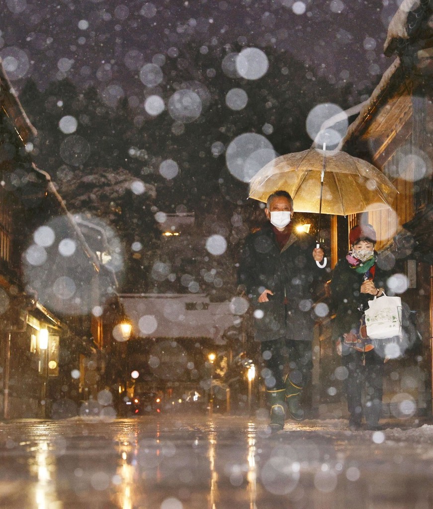 当地时间2020年12月31日,日本金泽,人们在雪中行走。图源:东方IC