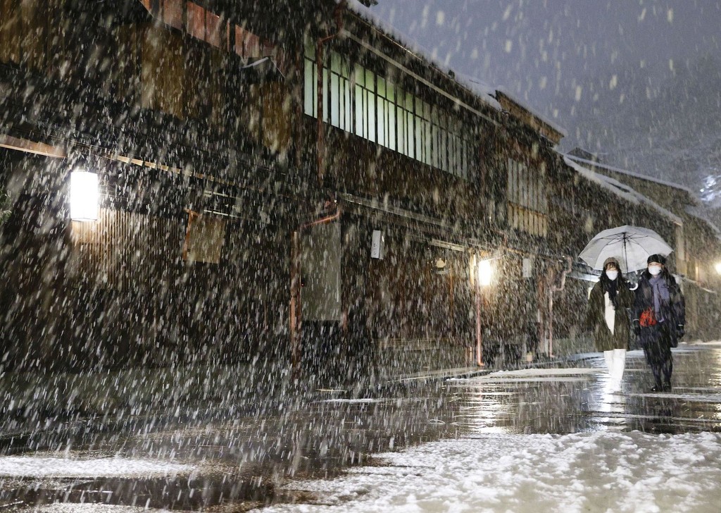 当地时间2020年12月31日,日本金泽,人们在雪中行走。图源:东方IC