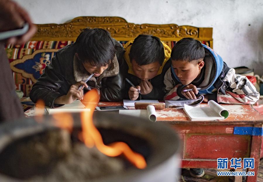 2020年3月6日,西藏当雄县乌玛塘乡巴嘎村的孩子在上网课。新华社记者 普布扎西 摄