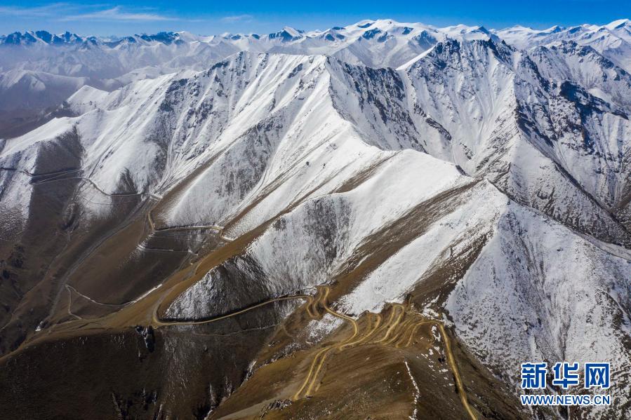 这是2020年5月1日拍摄的通往新疆喀什地区叶城县西合休乡亚尔阿格孜村的道路蜿蜒在崇山峻岭间(无人机照片)。新华社记者 胡虎虎 摄