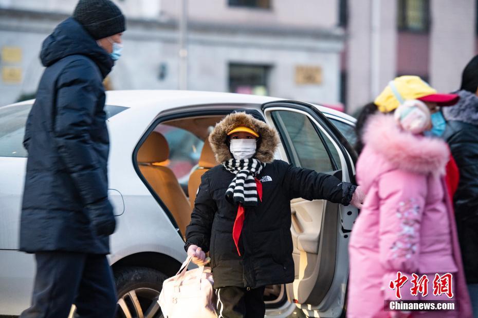 1月7日清晨,北京市西城区一所小学外,小学生们包裹严实前来上学。据中国天气网显示,1月6日傍晚,北京南郊观象台气温跌至-17.1℃,已打破2000年以来北京气温最低纪录。 中新社记者 侯宇 摄