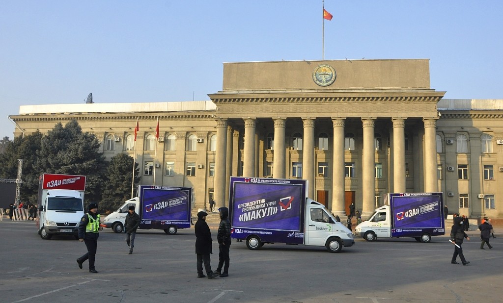 当地时间2021年1月8日,吉尔吉斯斯坦大选在即,比什凯克的竞选活动准备工作已展开。吉尔吉斯斯坦总统选举将于1月10日举行。根据吉中央选举委员会公布的信息,共有18名符合参选条件的候选人竞选。图片来源:视觉中国/人民视觉