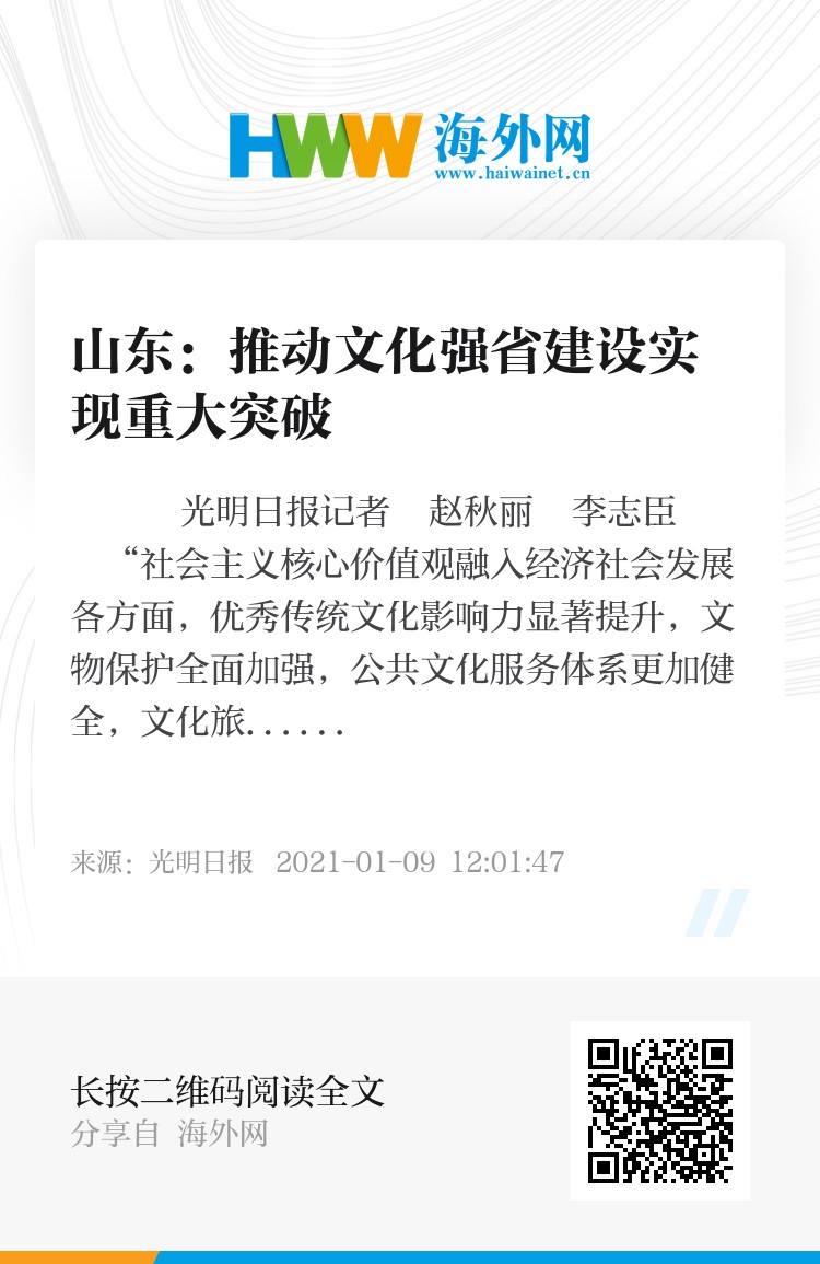 “社会主义核心价值观融入经济社会发展各方面,优秀传统文化影响力显著提升,文物保护全面加强,公共文化服务体系更加健全,文化旅游业战略性支柱产业地位充分彰显……”日前,《中共山东省委关于制定山东省国民经济和社会发展第十四个五年规划和二〇三五年远景目标的建议》(以下简称《建议》)将“文化强省建设实现重大突破”摆在突出位置,提出“十四五”时期文化强省建设实现突破、塑成优势的目标任务。