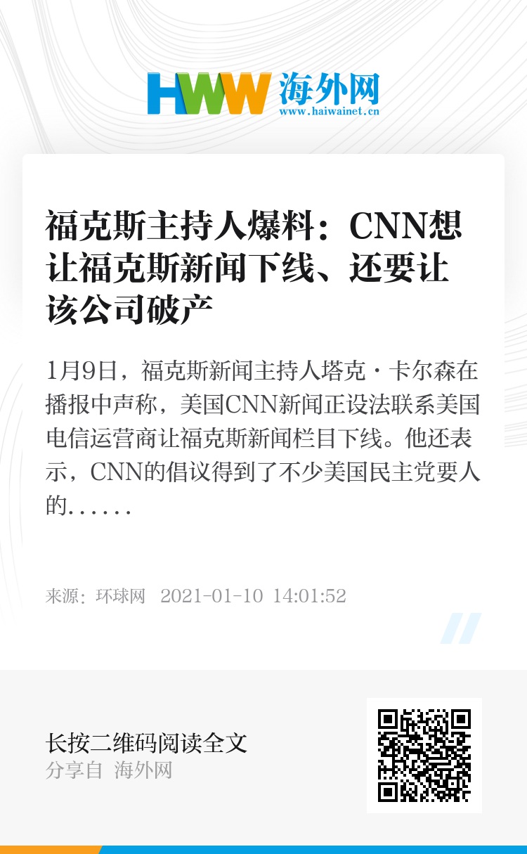 原标题:《特朗普之后是他们?福克斯主持人爆料:CNN正设法联系美电信运营商让福克斯新闻栏目下线,获多位民主党人支持》