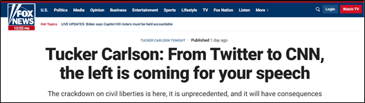 长期以来,亲共和党及特朗普的福克斯新闻,一直与亲民主党的CNN存在政治分歧和业务上的竞争关系,卡尔森提出的这一说法立刻引发了美国民众对“言论自由”等议题的关注。