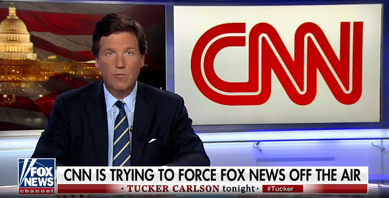 1月9日,福克斯新闻主持人塔克·卡尔森在播报中声称,美国CNN新闻正设法联系美国电信运营商让福克斯新闻栏目下线。他还表示,CNN的倡议得到了不少美国民主党要人的支持。