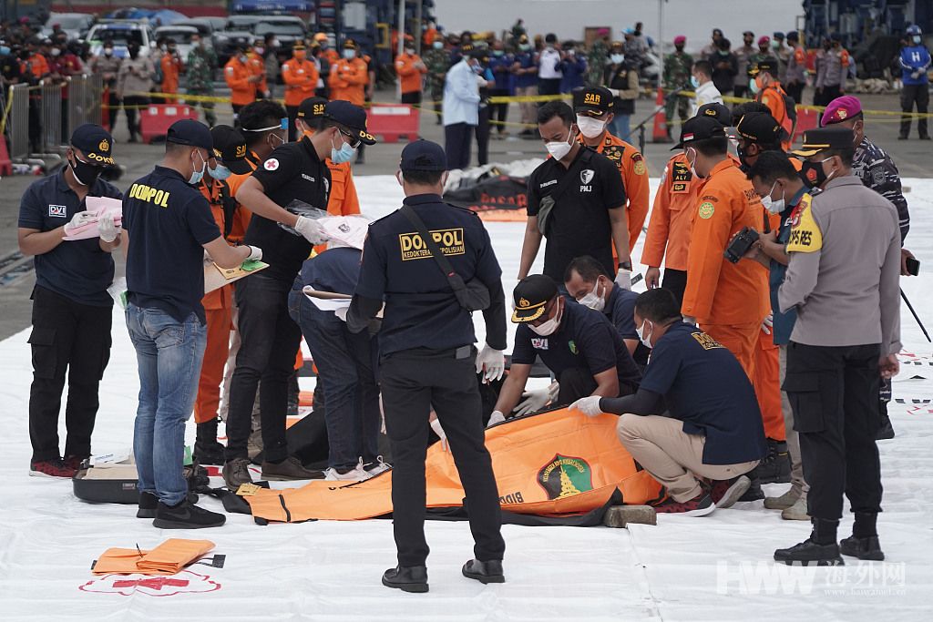 当地时间2021年1月10日,三佛齐航空公司SJ182航班客机失事后,印尼政府在雅加达丹绒布禄港设置了一个搜救中心,集中各方力量加大搜救力度。在印尼海军蛙人的协助下,飞机部分残骸和大量乘客物品被打捞上岸。目前,打捞上岸的物品正陆续运往搜救中心供家属进行辨认。(供图:视觉中国)