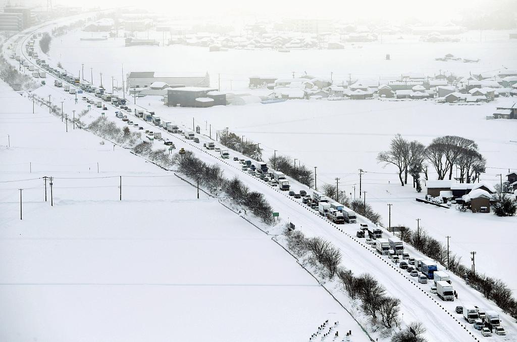 日本强降雪致多人死亡 大量汽车公路上抛锚