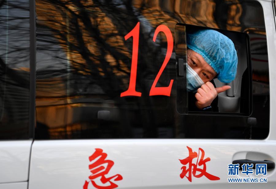 1月11日,在天津市急救中心,即将启程的医疗队员竖起大拇指表达信心。新华社记者 李然 摄