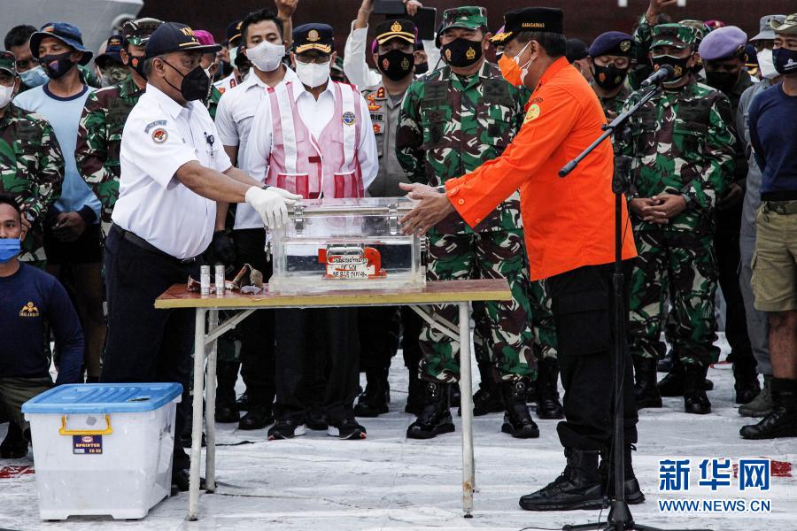 1月12日,在印度尼西亚首都雅加达,工作人员准备将“飞行数据记录仪”装进箱子中。新华社发(阿里芬摄)