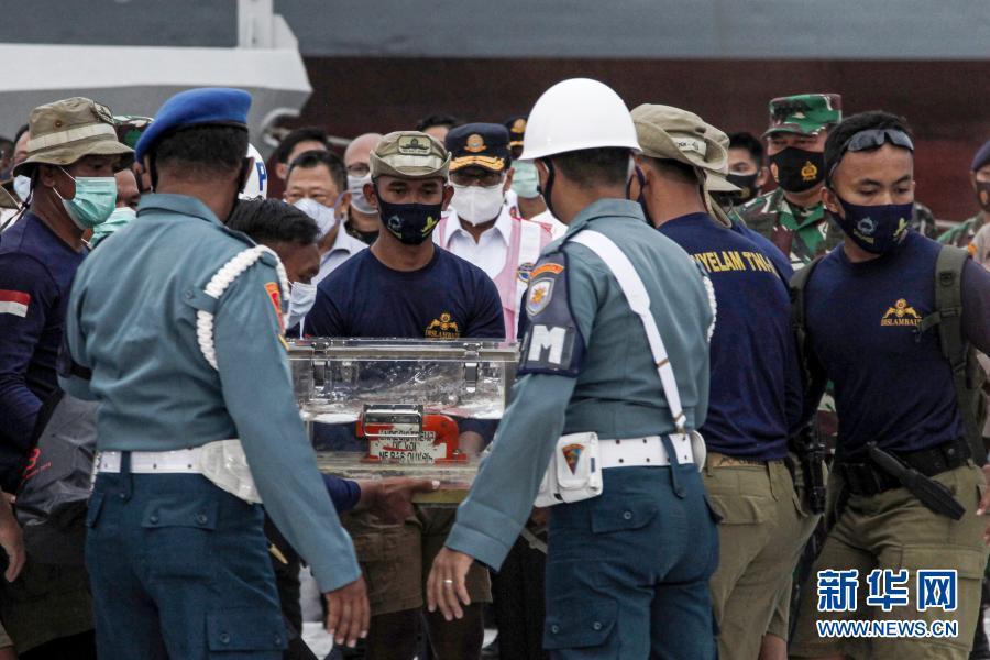 1月12日,在印度尼西亚首都雅加达,潜水员搬运“飞行数据记录仪”。新华社发(阿迪蒂亚·伊拉万摄)