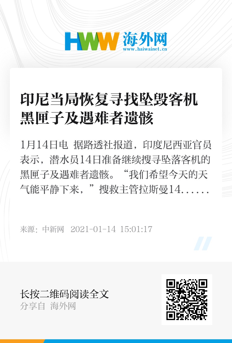 中新网1月14日电 据路透社报道,印度尼西亚官员表示,潜水员14日准备继续搜寻坠落客机的黑匣子及遇难者遗骸。