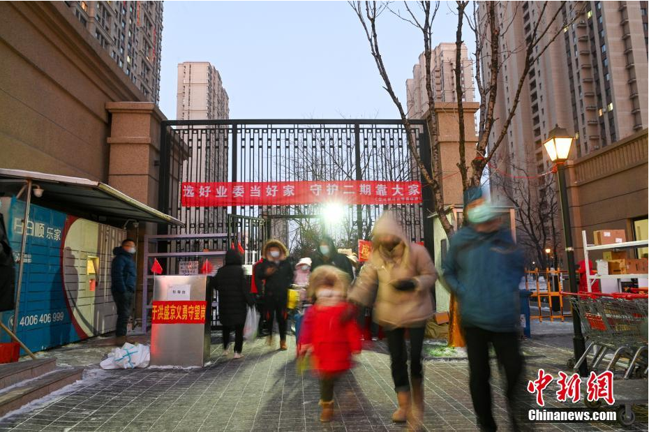 1月15日,辽宁省沈阳市本次疫情首批中风险小区之一华润橡树湾二期正式解封。图为市民走出小区。中新社记者 于海洋 摄