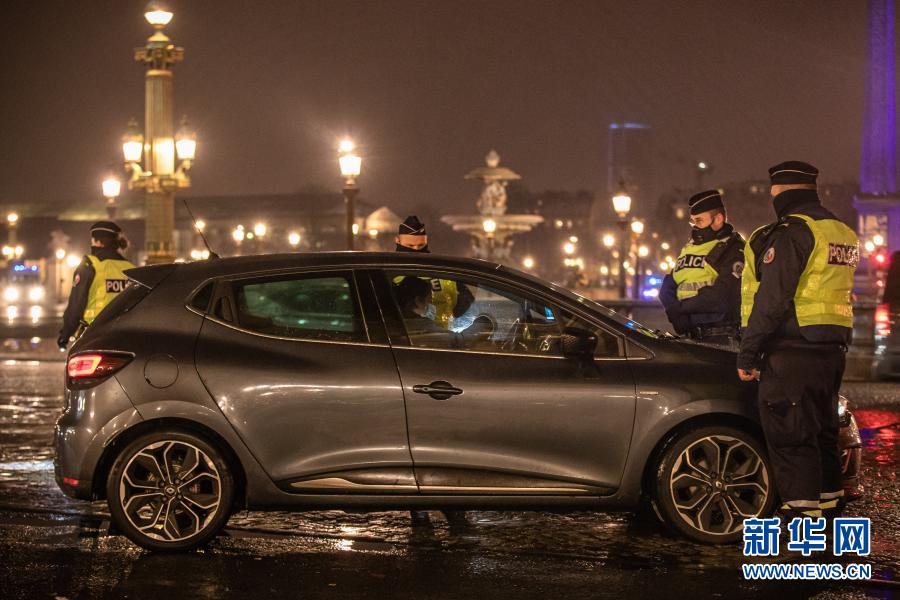 1月16日晚,警察在法国巴黎协和广场检查车辆。新华社发(奥雷利安·莫里萨尔摄)