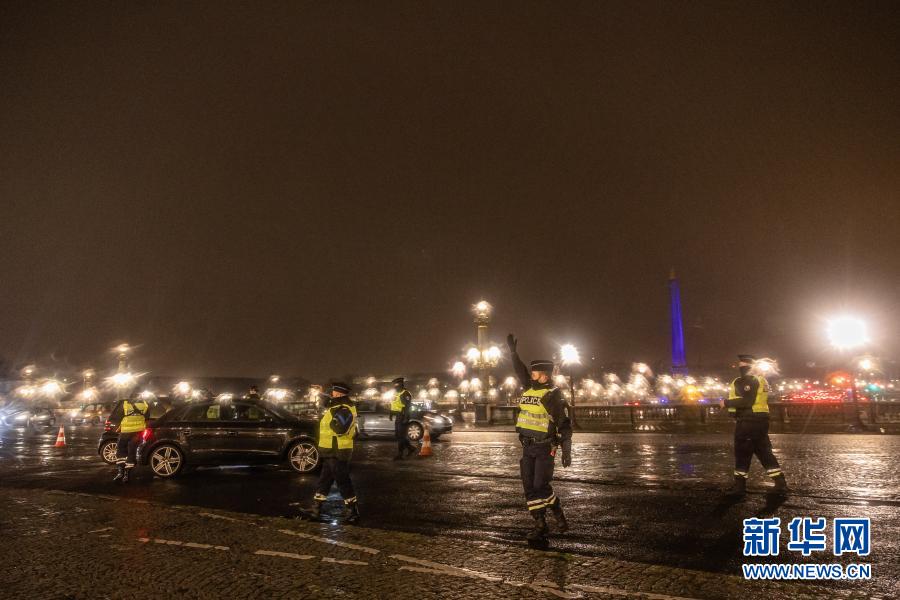 1月16日晚,警察在法国巴黎协和广场检查车辆。新华社发(奥雷利安·莫里萨尔摄)