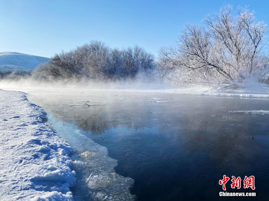 1月16日,额尔古纳国家湿地公园内的“不冻河”两岸形成森林雾凇和雪松观赏带。位于内蒙古自治区呼伦贝尔市额尔古纳国家湿地公园内的“不冻河”,由于河水长年不冻,温差变化较大,沿河形成森林雾凇和雪凇观赏带,两岸满树雾凇银妆素裹,好似进入童话世界。中新社记者 张玮 摄