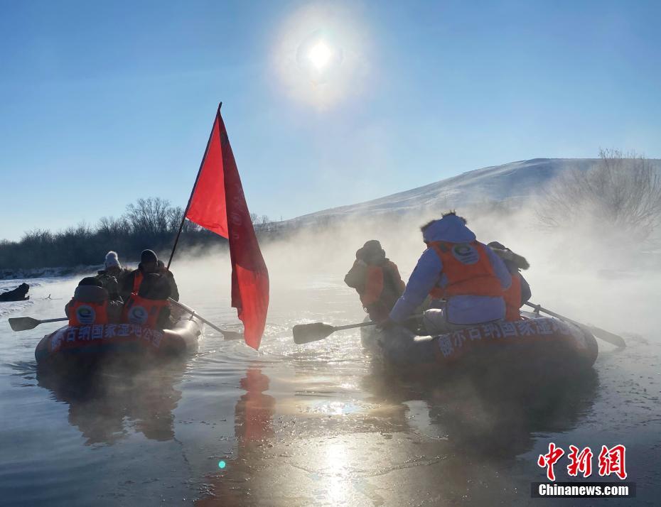 1月16日,额尔古纳国家湿地公园内的“不冻河”两岸形成森林雾凇和雪松观赏带。位于内蒙古自治区呼伦贝尔市额尔古纳国家湿地公园内的“不冻河”,由于河水长年不冻,温差变化较大,沿河形成森林雾凇和雪凇观赏带,两岸满树雾凇银妆素裹,好似进入童话世界。中新社记者 张玮 摄