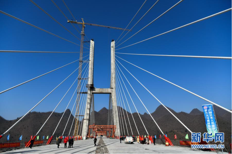 1月18日,由贵州桥梁集团承建的都(匀)安(顺)高速公路云雾大桥成功合龙。云雾大桥位于贵州省贵定县云雾镇境内,全长1720米。大桥成功合龙缩短了滇黔两省距离,对助推滇黔桂石漠化片区经济社会发展有重要意义。新华社记者 杨文斌 摄