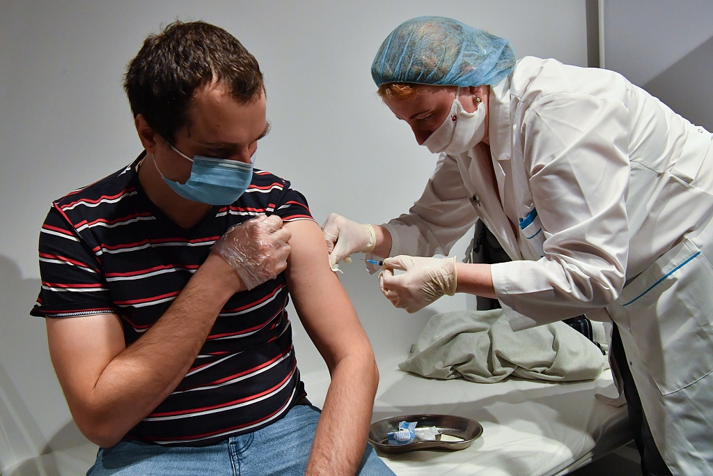 据俄罗斯塔斯社报道,当地时间18日,俄罗斯开始实施大规模新冠疫苗接种。愿意接种疫苗的民众有2款疫苗可选。图片来源:人民视觉/视觉中国