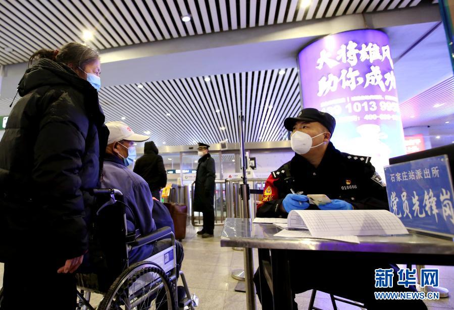 1月18日,石家庄站派出所民警在石家庄火车站内登记旅客信息。新华社发