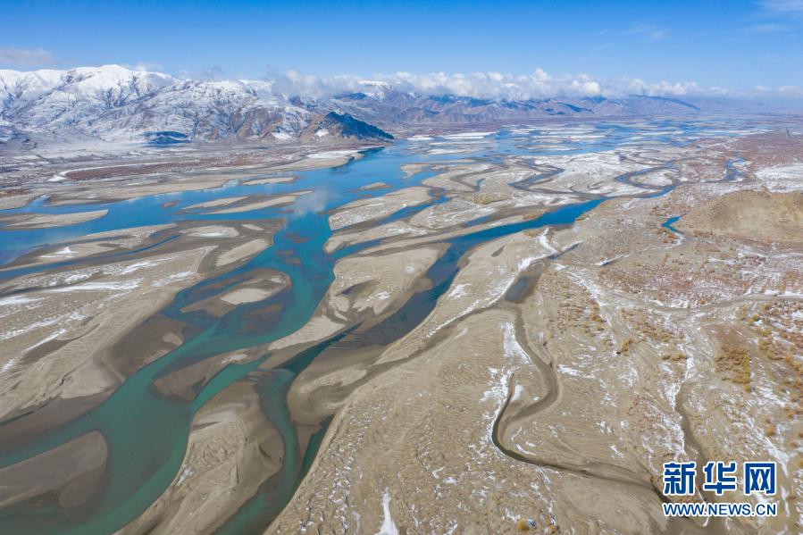 这是2020年3月24日拍摄的雅鲁藏布江雪景(无人机照片)。新华社记者 普布扎西 摄