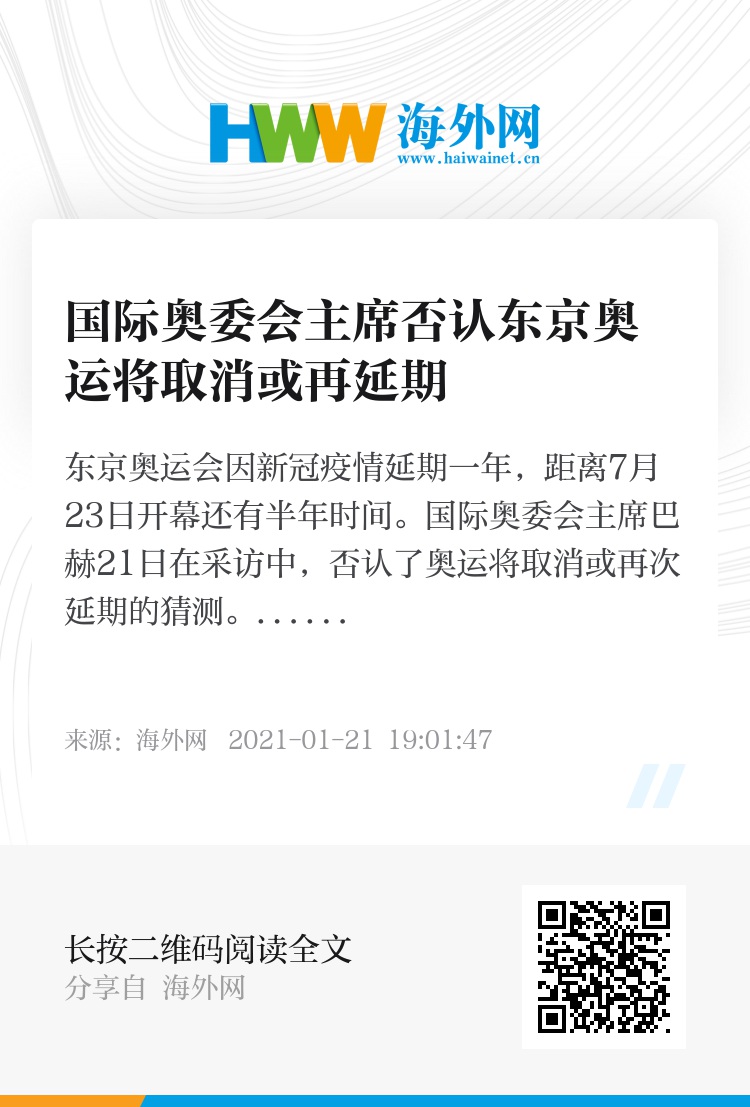 海外网1月21日电 东京奥运会因新冠疫情延期一年,距离7月23日开幕还有半年时间。国际奥委会主席巴赫21日在采访中,否认了东京奥运将取消或再次延期的猜测,称“现阶段根本没有7月奥运会不开幕的理由,所以也没有替代方案”。