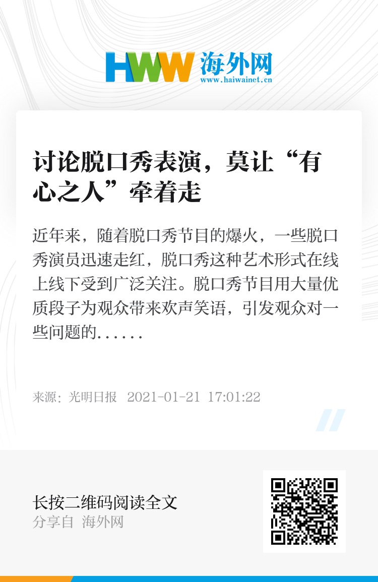 近年来,随着脱口秀节目的爆火,一些脱口秀演员迅速走红,脱口秀这种艺术形式在线上线下受到广泛关注。脱口秀节目用大量优质段子为观众带来欢声笑语,引发观众对一些问题的关注和讨论,但同时也有不少段子引发了争议。日前,由两名脱口秀演员引发的话题大讨论持续升级,网友评论中甚至出现了性别对立、人身攻击等论战和谩骂。脱口秀本是给人带来欢乐的艺术形式,但是翻阅海量评论,关于段子是否好笑,表演是否精彩的评论被湮没,充斥的尽是充满火药味地站队,大家在线下聊起脱口秀,开场白也成了“你支持谁”。是谁在推波助澜,把围绕作品的讨论升级为群体对立,跑题千里之外,争吵无休止,这种现象值得深思。