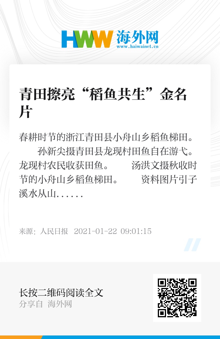 “借此机遇,青田擦亮全球重要农业文化遗产的金名片,鼓励并支持对家乡富有情感的归国华侨、科技人才、乡贤能人,积极投身农业文化遗产保护和稻鱼产业发展。”青田县委书记周和平介绍。