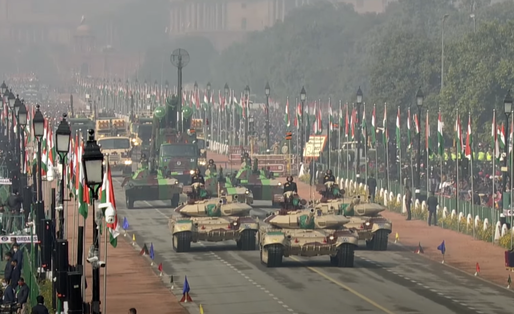 印度军队在此次阅兵式上展示了T-90主战坦克、Samvijay新型电子战系统、“布拉莫斯”导弹、“皮那卡”火箭炮等武器。此次阅兵式上的新面孔包括多名女性军人,其中一位名为巴瓦纳·坎特的女上尉是首位参加共和国日阅兵的印军女性战斗机飞行员;还有一位率队出场的名为普里蒂·乔杜里的女上尉,她负责领导升级版“石勒喀河”防空武器系统部队,这种印度自行升级老式苏制防空系统是首次出现在共和国日阅兵式上。