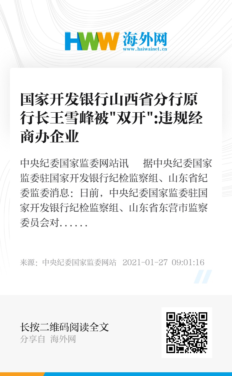 原标题:国家开发银行山西省分行原行长王雪峰被"双开"