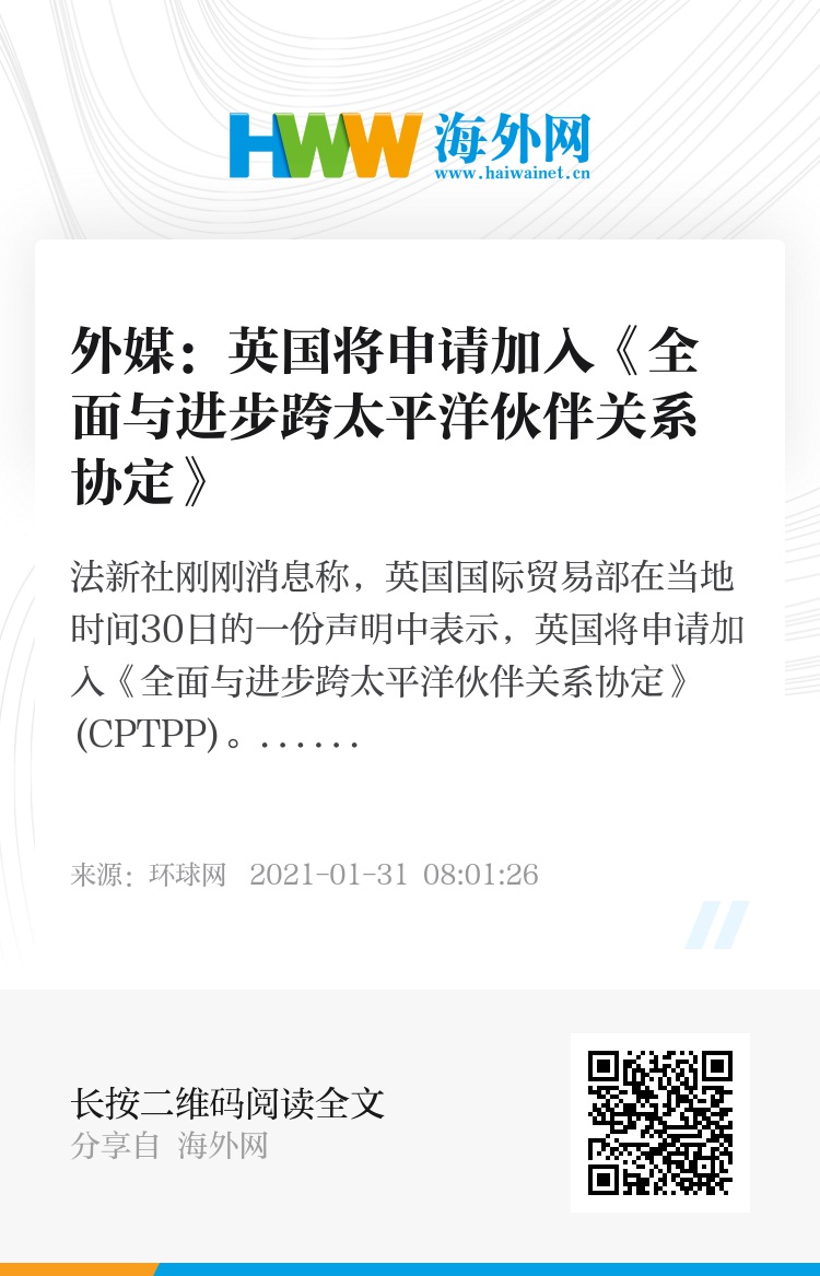 31970930,.外媒:英国将申请加入《全面与进步跨太平洋伙伴关系协定》,.2021-01-31 08:01:54,.204476,.李晓航