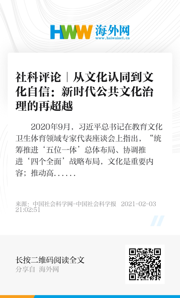 总而言之,公共文化治理需要深化文化认同与增强文化自信,以确保治理能力和治理成效能够在不断超越中臻于卓越,进而为“促进全体人民在思想上精神上紧紧团结在一起”固本强基。