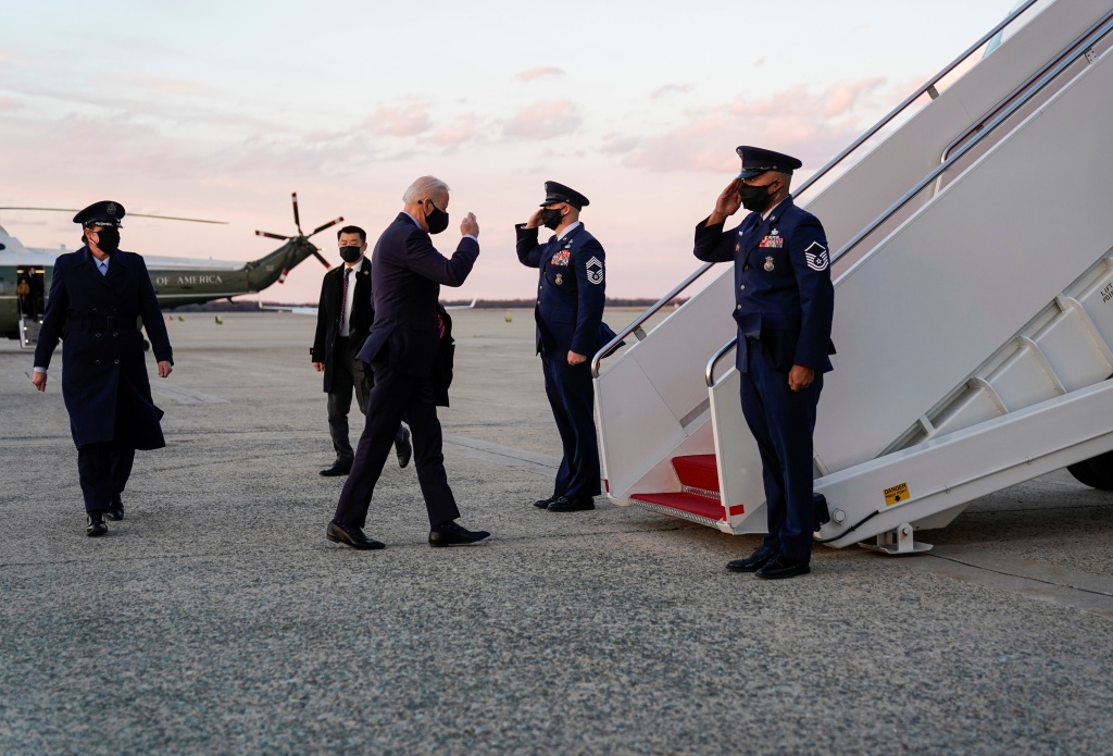 当地时间2021年2月5日,美国,拜登以总统身份首次乘坐空军一号,从白宫飞抵特拉华州度周末。图片来源:IC photo