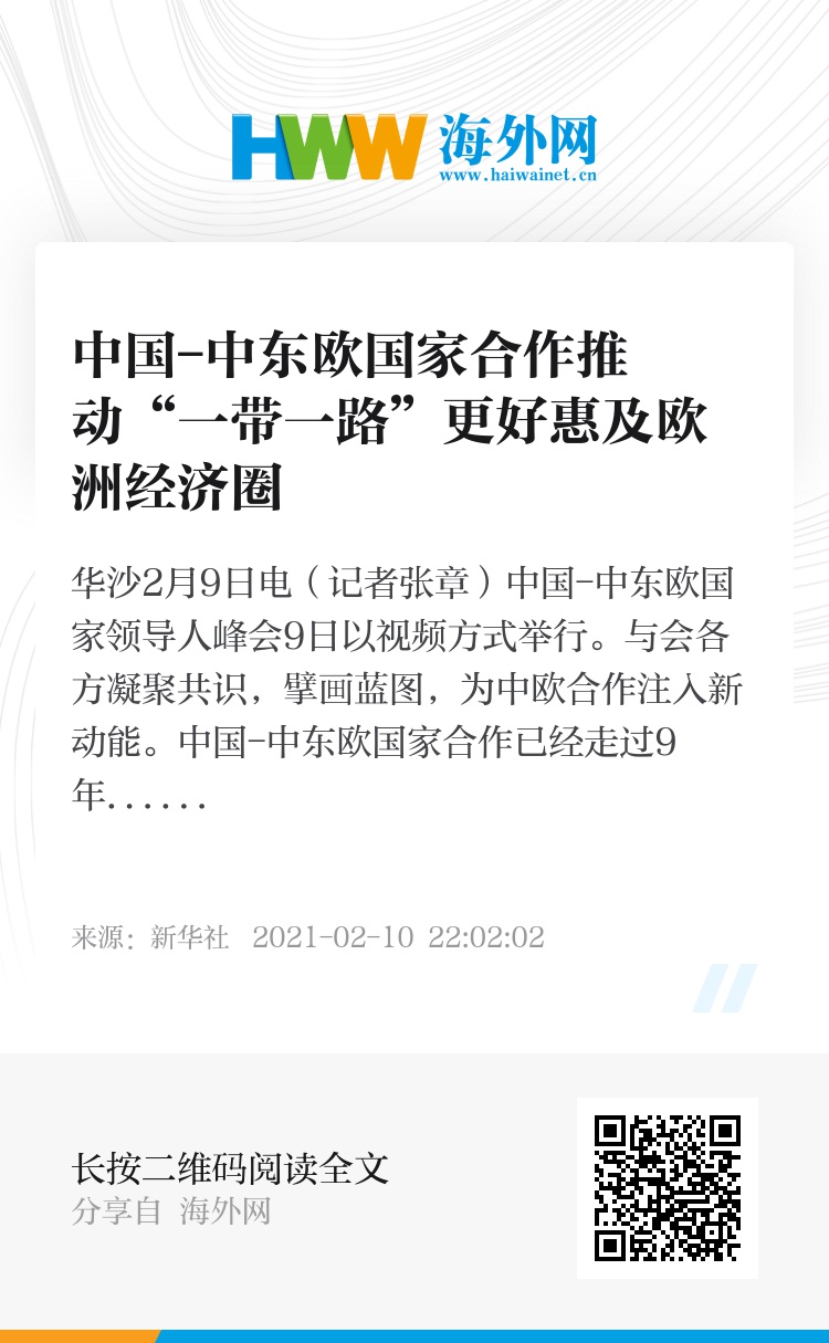 新华社华沙2月9日电(记者张章)中国-中东欧国家领导人峰会9日以视频方式举行。与会各方凝聚共识,擘画蓝图,为中欧合作注入新动能。