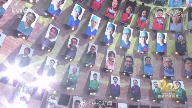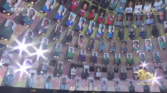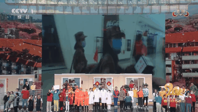 春晚现场还特别设置了抗疫医护墙