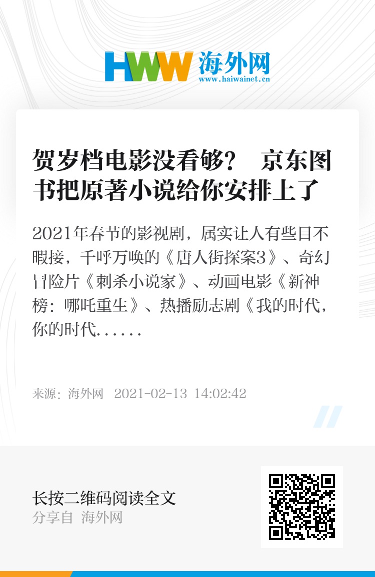 2021年春节的影视剧,属实让人有些目不暇接,千呼万唤的《唐人街探案3》、奇幻冒险片《刺杀小说家》、动画电影《新神榜:哪吒重生》、热播励志剧《我的时代,你的时代》……即便是当个不回家的“原年人”,“精神食量”已经备的足足的!好片不少,没看够怎么办?内容更丰富、更精彩的原著小说或许会是你的又一选择。看完热映的影视剧,可以来京东图书买本小说,在文字的世界中再过把瘾!