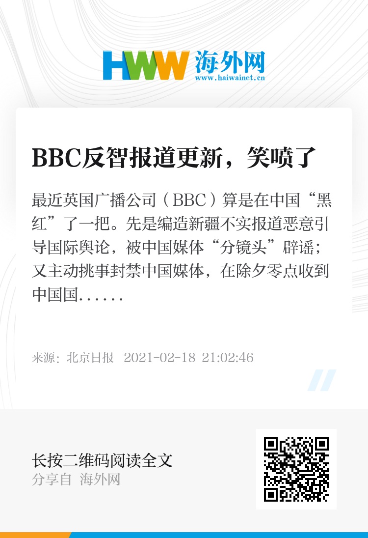 走到人人喊打的地步后,BBC又彻底放飞自我,开始大搞反智报道。2月18日,其报道声称,“中国当局多年来一直在进行天气操纵项目……中国人工降雨雪展示了控制天气的雄心,引起了邻国的担忧。”