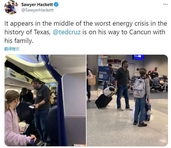 据“今日俄罗斯”(RT)18日报道,当地时间17日有网友在社交媒体上发布了数张克鲁兹及其家人在机场登机的照片,并配文称“在得克萨斯面临历史上最严重的能源危机之时,克鲁兹正在和家人一起去往坎昆。”