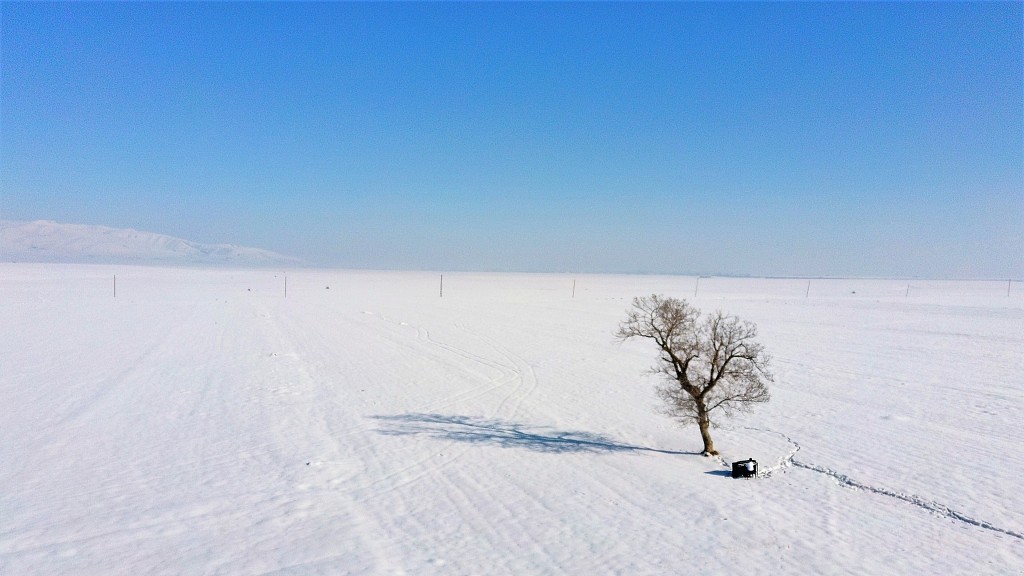 当地时间2021年2月17日,土耳其穆什,9岁视觉障碍钢琴家Bager Calisci在雪地演奏。他梦想着能在树下弹钢琴。图片来源:视觉中国