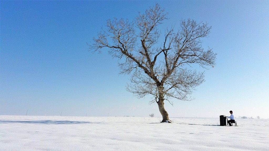 土耳其9岁视觉障碍钢琴家雪地演奏 树下弹钢琴梦想成真