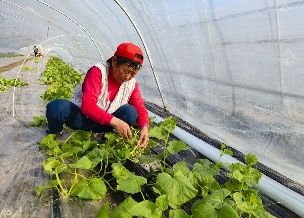 2月18日,村民在江苏省泰州市海陵区苏陈镇前窦村甜瓜种植基地对甜瓜幼苗进行管护。图片来源: 汤德宏/IC photo