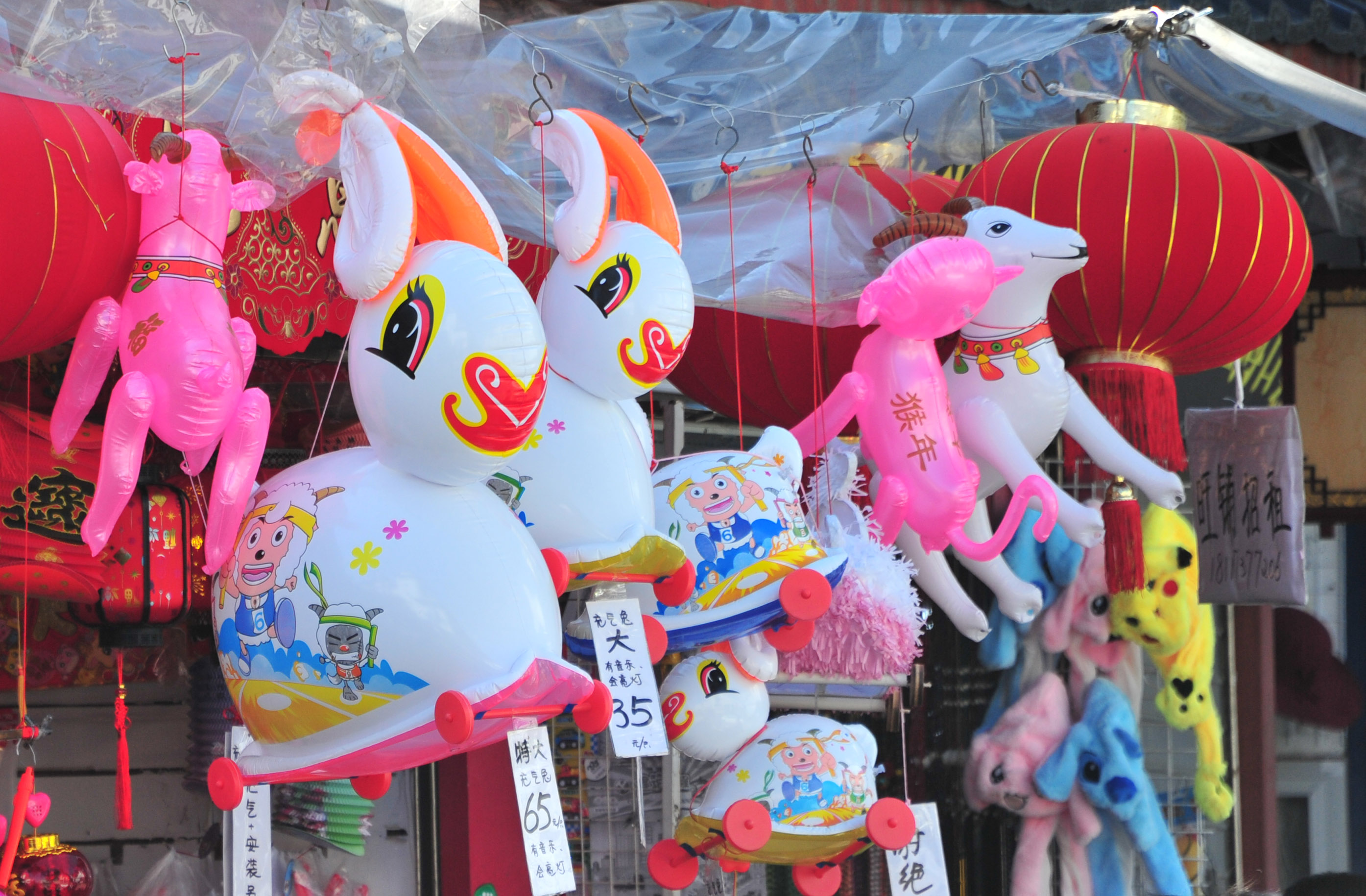 2月18日,牛年春节刚过,元宵佳节又将到来,这几天,上海豫园福佑路小商品市场显得更加热闹,各种各样的元宵花灯已纷纷亮相,除了传统的小灯笼,更多的是玲琅满目的兔子灯,不仅有塑料的卡通工艺灯,也有手工制作的传统兔子灯,小的在68元左右,大的手工兔子灯价格要160元,但一些家长还是给孩子买手工兔子灯较多,因为他们感觉这更有自己小时候的美好回忆。图片来源: 杨建正/IC photo