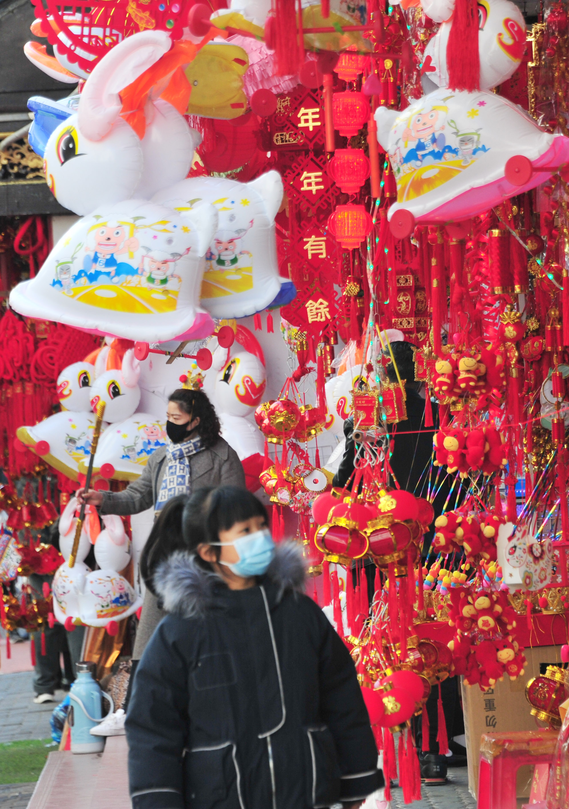 2月18日,牛年春节刚过,元宵佳节又将到来,这几天,上海豫园福佑路小商品市场显得更加热闹,各种各样的元宵花灯已纷纷亮相,除了传统的小灯笼,更多的是玲琅满目的兔子灯,不仅有塑料的卡通工艺灯,也有手工制作的传统兔子灯,小的在68元左右,大的手工兔子灯价格要160元,但一些家长还是给孩子买手工兔子灯较多,因为他们感觉这更有自己小时候的美好回忆。图片来源: 杨建正/IC photo