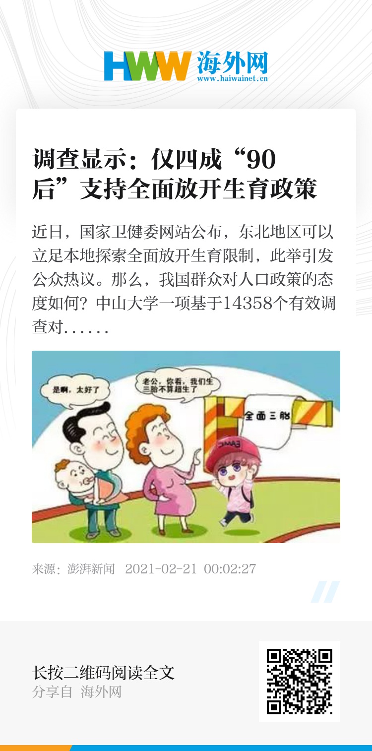 31982923,.调查显示:仅四成“90后”支持全面放开生育政策,.2021-02-21 00:42:27,.3139,.海闻