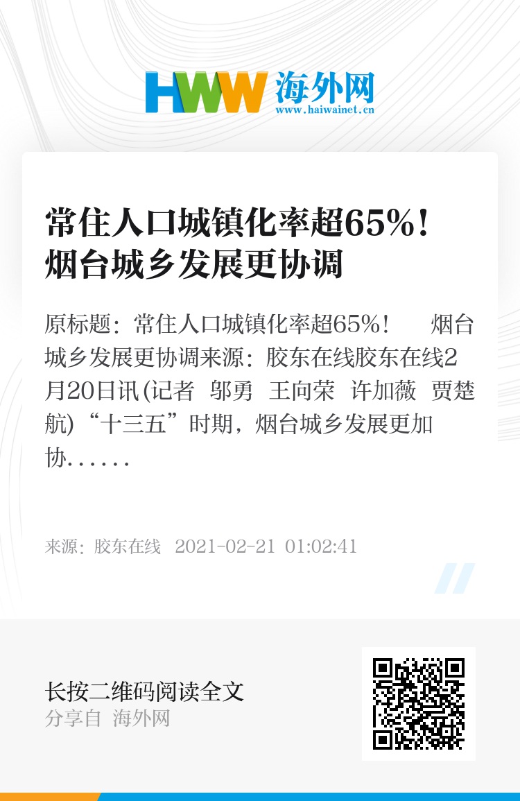 原标题:常住人口城镇化率超65%! 烟台城乡发展更协调