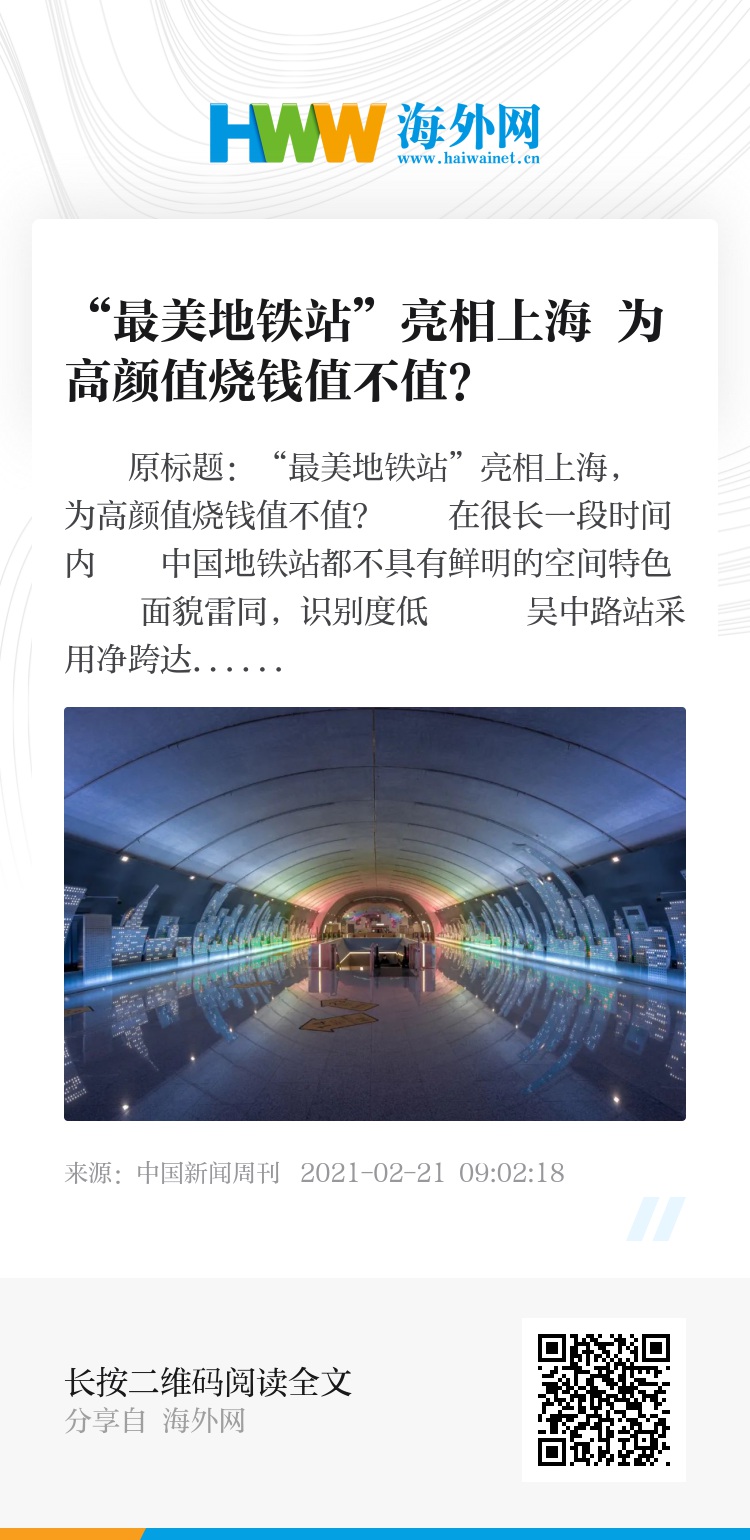 原标题:“最美地铁站”亮相上海, 为高颜值烧钱值不值?