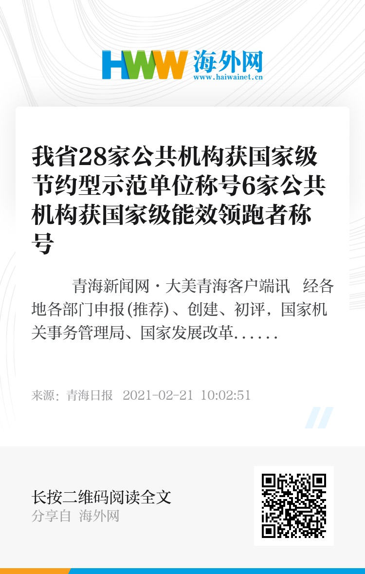 青海新闻网·大美青海客户端讯 经各地各部门申报(推荐)、创建、初评,国家机关事务管理局、国家发展改革委、财政部复核验收,确定我省审计厅等28个单位为2019-2020年国家级节约型示范单位,青海红十字医院等6个单位为国家级能效领跑者。