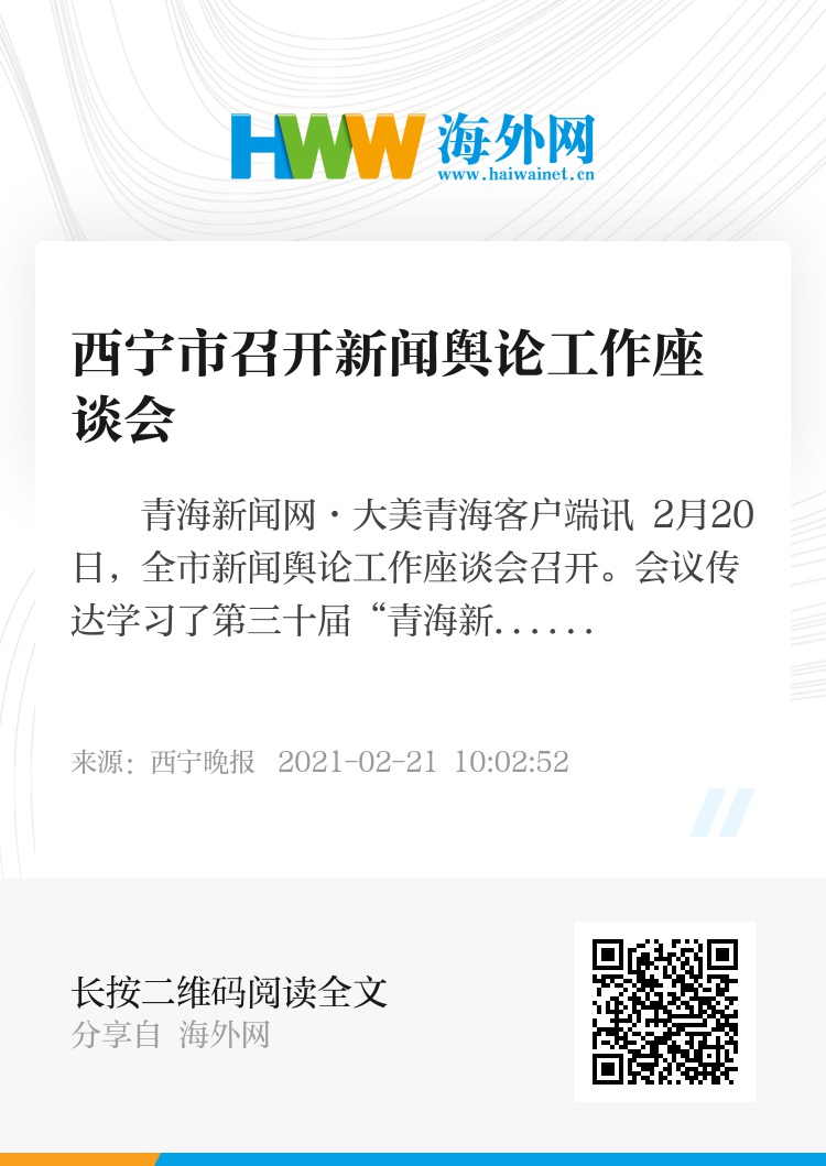 青海新闻网·大美青海客户端讯 2月20日,全市新闻舆论工作座谈会召开。会议传达学习了第三十届“青海新闻奖”颁奖大会精神,通报了第三十届“青海新闻奖”我市的获奖情况,总结并充分肯定去年工作,安排部署今年新闻舆论工作。