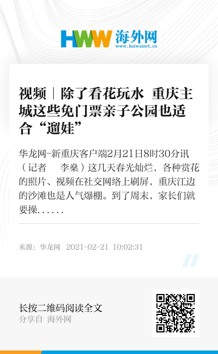 华龙网-新重庆客户端2月21日8时30分讯(记者 李燊)这几天春光灿烂,各种赏花的照片、视频在社交网络上刷屏,重庆江边的沙滩也是人气爆棚。到了周末,家长们就要操心可以带孩子去哪里春游。其实,带孩子去儿童公园游玩,享受亲子时光也是个不错的选择。昨(20)日,华龙网-新重庆客户端记者就实地打探了重庆主城几个免门票的亲子儿童公园,感受了颇具童趣的世界。而且,这些公园的交通也都比较便捷,值得前往!