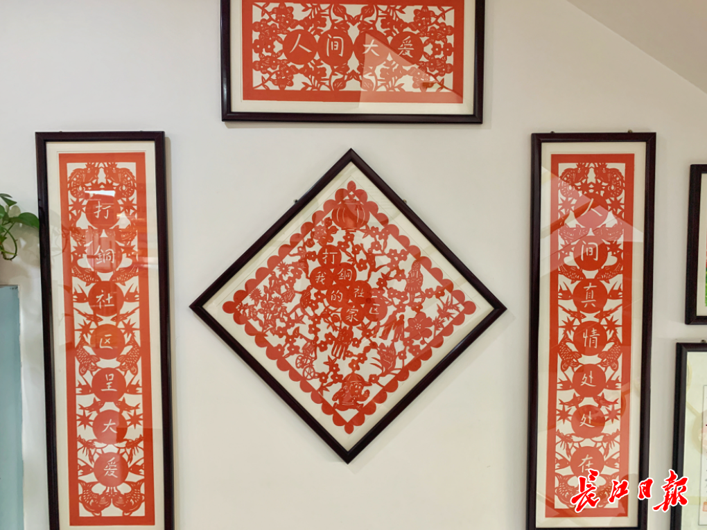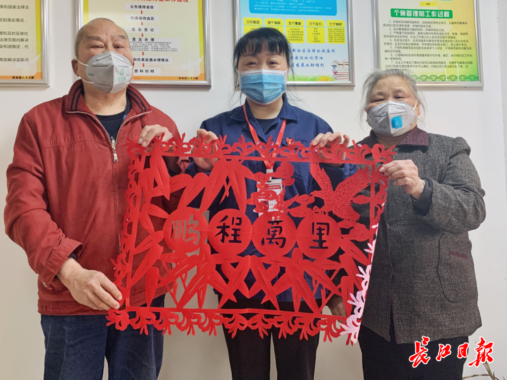 黄明生与妻子蔡运娥在民权街打铜社区居住了大半辈子,2018年搬到了位于盘龙城的公租房居住。为了给“老家人”送来新鲜出炉的剪纸作品,老两口一大早就从家里出发,专门乘车1个小时回到社区。